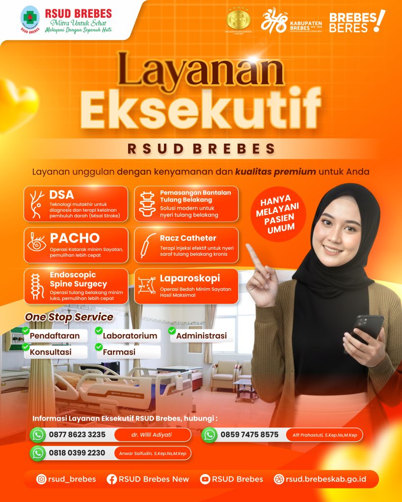 Kini RSUD Brebes menghadirkan Layanan Eksekutif dengan kenyamanan dan kualitas premium untuk Anda.