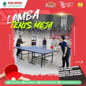 Lomba Olahraga Tenis Meja (Perorangan Putra – Putri) dalam kegiatan Gebyar Merdeka RSUD Brebes dalam Rangka HUT RI ke-79 di Hall Gedung Penunjang