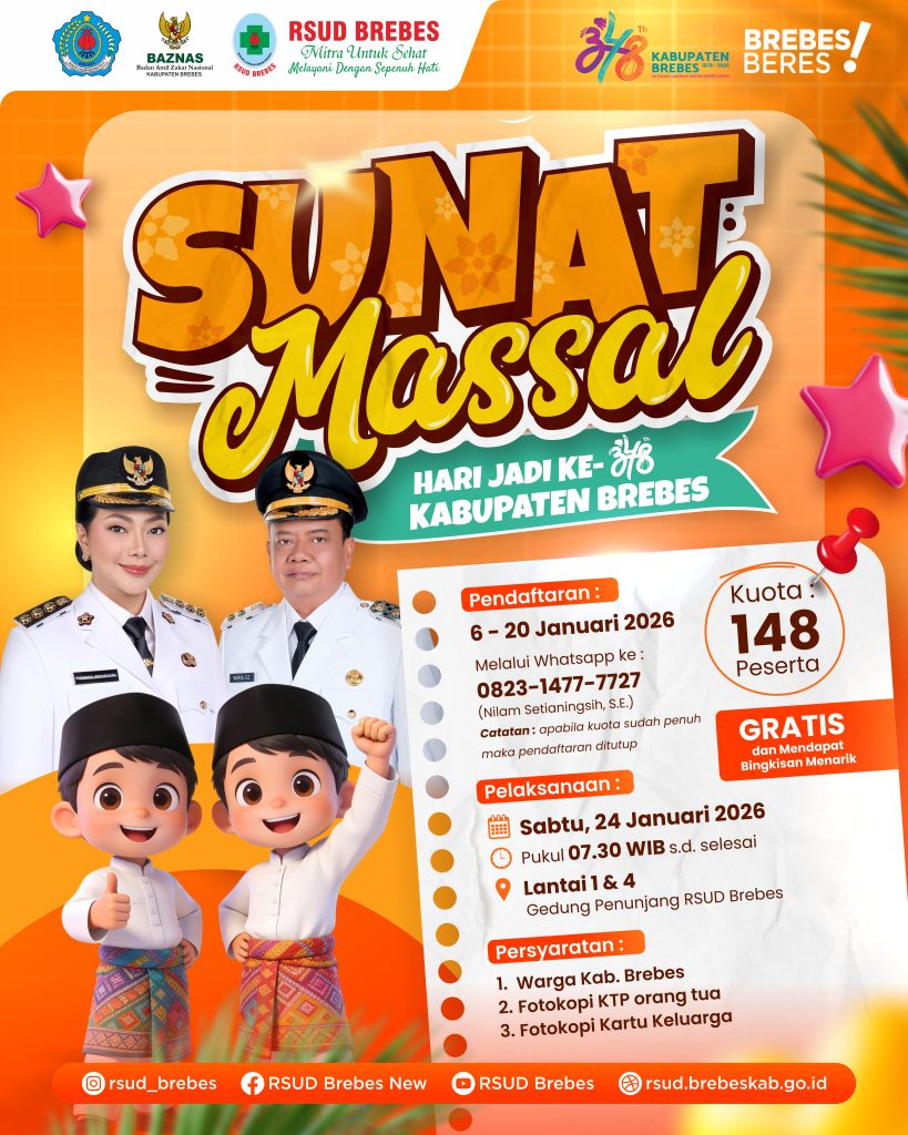 Pemkab Brebes, Panitia Hari Jadi Kab Brebes Ke-348, RSUD Brebes dan Baznas Brebes mengajak putra-putra terbaik Brebes untuk ikut *Sunat Massal GRATIS* π©ΊβοΈ